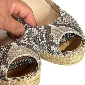Stuart weitzman Beige Snakeskin Embossed Leather Espadrille Wedge Slingback 9.5M