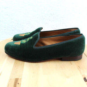 Stubbs Wootton Loafer Womens 6 Green Velvet Embroidered Slip On Comfort Shoe