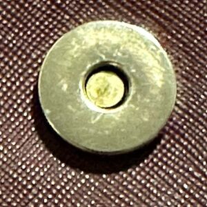 Burgundy faux leather clutch with gold studs, featuring a magnetic snap closure and interior pockets. Option to carry as a crossbody, but does not come with a strap. The magnetic snap has some small scratches (see photo), but otherwise it is in great condition.