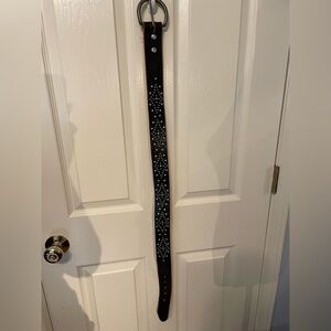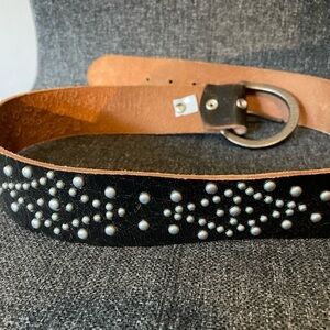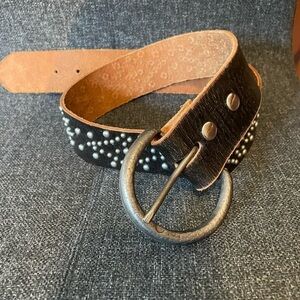 Studded Leather Belt with Hammered Metal Buckle Small-Medium