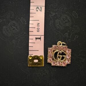 This beautiful pink rhinestone with the Gucci logo in the center charm, originally from a zipper pull, bag, or key charm, has been transformed into a stunning necklace on a gold-plated chain. A perfect piece to layer or wear as a bold statement, it can also be added to your favorite necklace or bracelet for a personalized touch. It’s a remarkable gift that radiates elegance and style, and it will include a floating display case to showcase its beauty.