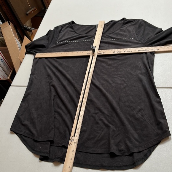 Style & Co size Large black faux suede 3/4 sleeve top with studs