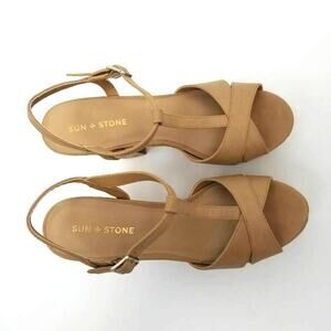 Sun + Stone Jamie T-Strap Block Heel Platform Wedge Sandals Size 9.5M