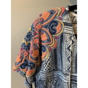 Sundance Boho 100% Linen Top Sz XS Short Sleeve V-neck Shirt Blue Tapestries