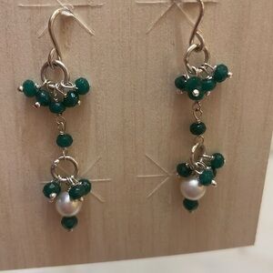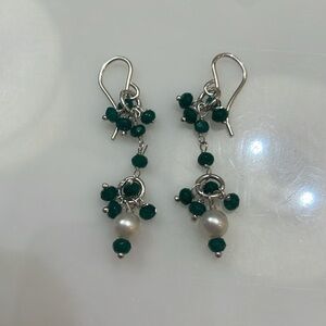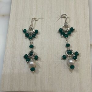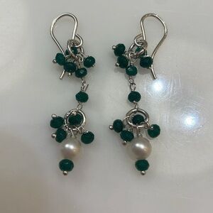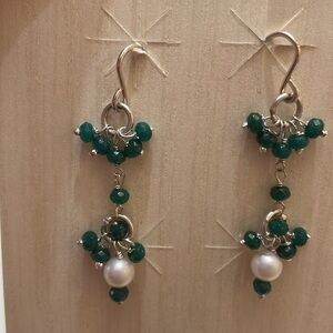 Emerald, Freshwater Pearl & Sterling Silver Linked Earrings—BEAUTIFUL!! All natural stones and pearls. New Without Tags. I am a jewelry designer for Sundance Catalog. I am selling pieces from my collection. These earrings were in the Sundance Catalog.