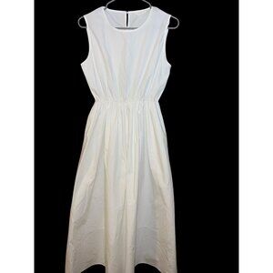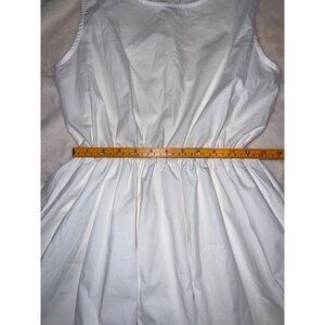 This Sunday brand white poplin-style midi dress is the perfect blend of elegance and effortless style. Made from 100% breathable cotton with a polyester-lined skirt, it features a lightweight, crisp poplin texture, giving it a structured yet flowy silhouette. The gathered waist adds shape, while the sleeveless design, keyhole back closure, and two side pockets create a chic, timeless, and functional look. The lining ensures coverage and comfort, making this dress ideal for spring, summer, brunch dates, vacations, resort wear, white parties, bridal events, or layering year-round.