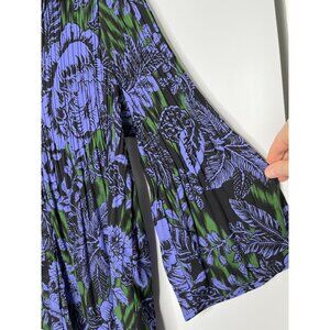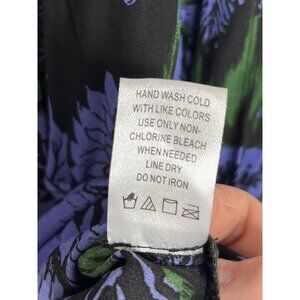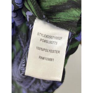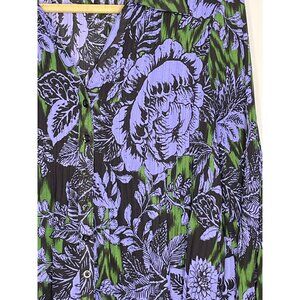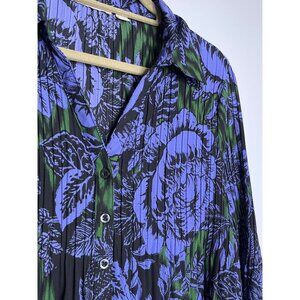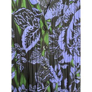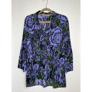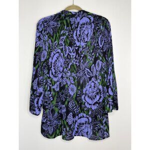 Sunny Leigh Purple Green Black Button Front Collared Floral Tunic Blouse Large