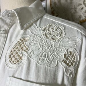 Super Natural by Secret Mission Cotton Twill Eyelet Everly Shirt Jacket In Ecru