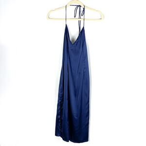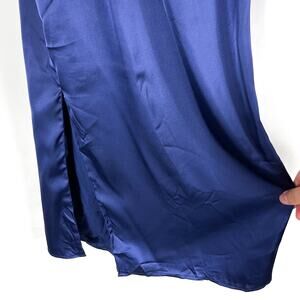 Superdown Frida Side Slit Dress Navy Blue Midi Satin Sleeveless Sz M