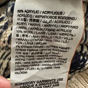 Superdry Fairisle Heart Knit Pullover Sweater Beige/Blue SZ XL Wool Blend is in good preowned preowned condition.