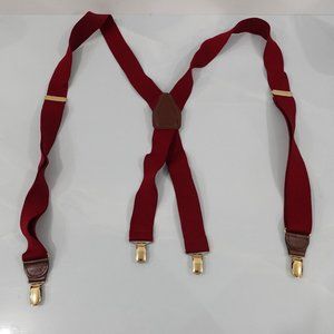 Suspender Mens Red Clip On X Back Adjustable Stretch Burgundy Wine WEST GERMANY