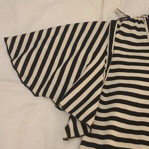 Super cute Suzanne Betro tiered black and Cream stripe dress with flutter sleeves. In ereally good pre-loved condition. 💗 Ot does have a tiny hole that's barely noticeable on the back about an inch from the tag. See photos for details. From a pet free, smoke free home.