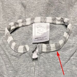 Swaddle Designs zzZipMe Sleep Sack Size S (0-6 Months) Gray Cotton 2-Way Zipper. Sleep sack is in good preowned condition, with minor wash wear, and very light yellowing at neckline. (Please see last photo.) 100% soft, combed cotton knit. 2-way zipper zips down from top and zips up from bottom. Size S (0-6 months) fits up to 28 inches. Item comes from smoke-free, cat-friendly home.