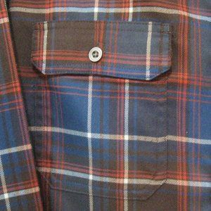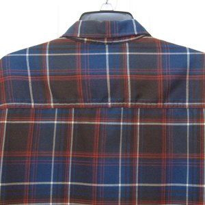 Swiss Tech Mens Plaid Shirt sz L (42-44) Rust Brown Dark Blue