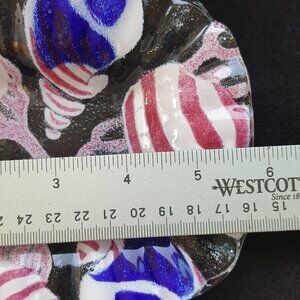 Sydenstricker Glass Trinket Dish Seashells Fused Art Glass Red White Blue 5 x 6