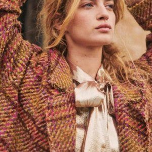 Sézane Plaid Marlone Coat in Brown and Fuschia Wool Sz 34 / US 4 or 6 oversized