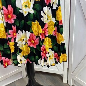 T Tahari Floral Print Accordion Pleat Sleeveless Belted Dress Black Multi