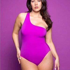 TA3 One Sidey One-Piece Swimsuit in Orchid Purple. Size Large.