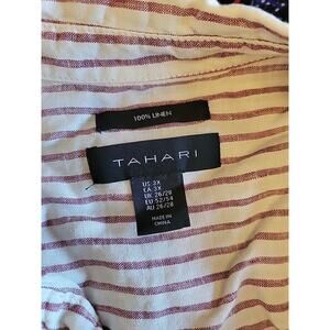 TAHARI 100% Linen Red Striped Shirt Dress Tunic 3X