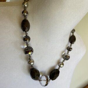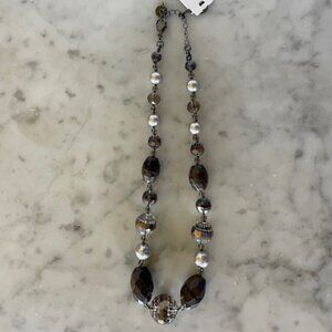 TALBOTS Smoky Gray Silver Beaded 19" Necklace