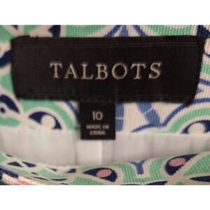 This TALBOTS Womens Size 10 Skirt features a bright and vibrant kaleidoscope print, perfect for spring or summer. It's made of 97% Cotton / 3% Spandex high-quality fabric for added stretch and comfort. It is also fully lined. The colorful design and perfect mini-length make this skirt a stylish addition to any woman's spring and summer wardrobe that will last! *Used - Like New Condition