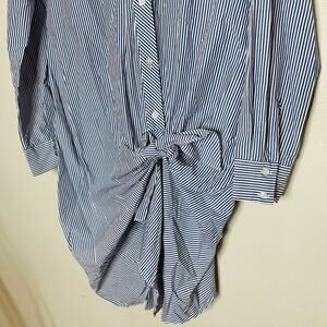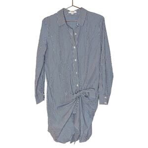 THAKOON COLLECTIVE Blue Stripe Pattern Tie Waist Button Front Shirtdress Size 10