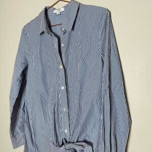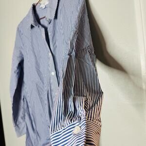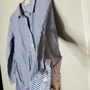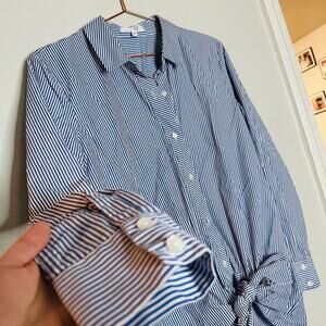 THAKOON COLLECTIVE Blue Stripe Pattern Tie Waist Button Front Shirtdress Size 10. This THAKOON dress sounds like a versatile piece that can be dressed up or down. The blue stripe pattern offers a classic look, while the tie waist allows for a customized fit. The shirtdress style adds a touch of polish, making it suitable for various occasions.
