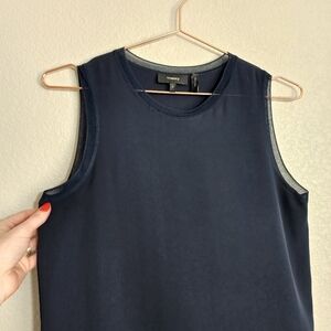 THEORY Lewie Silk tank top in Navy / chartreuse size Small
