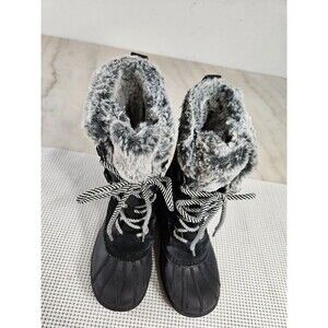 THERMOLITE Women's Thermolite Snow Gray Black Suede Solid Boots Size 1