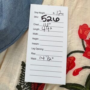 Top to bottom = 49 inches, Chest = 16 inches, Waist 14.5 inches