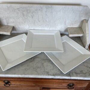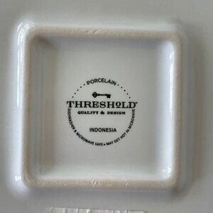 Threshold brand plate, known for its simple, modern design and durability. The plate is part of a dinnerware set that includes mugs, bowls, and salad plates. These sets are often microwave and dishwasher safe, making them ideal for everyday use.