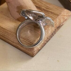 TK316 Stainless Steel Topaz Rhinestone Flower Ring Size 6
