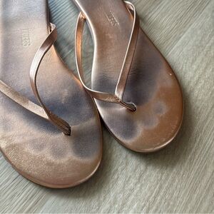 Metallic rose gold, there is some fading to the color. Stained as shown, nothing stronger than a damp rag was applied.
