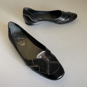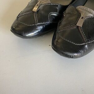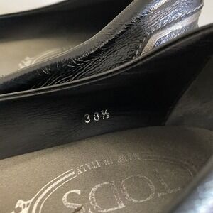 TOD's Ballet Flat Round Toe Zipper Black Patent Leather Slip On 38.5 8.5