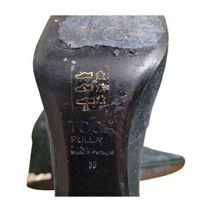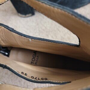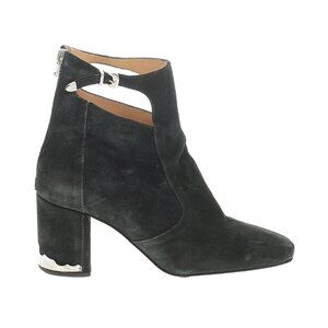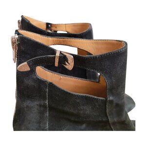 TOGA Pulla Black Suede Heeled Boots Booties EU 39 US 9 Zippered Buckle Cutout