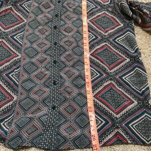 Tolani size medium Silk black combo printed button down long sleeve shirt. Great looking. Gently used.