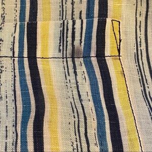 Pre-owned in great condition with no rips but does have some flaws. The inside collar shows some distressing. Not sure if supposed to be like that. The right cuff has some stains and middle button is cracked. There’s an extra button that can be replaced. Also some cracking on the last button in the front hem. Lastly, light stain on left front pocket. Please review pictures. Selling as-is. Still in great wearable condition. Comes from smoke and pet free home.