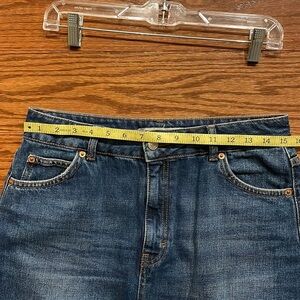 TOPSHOP MOTO denim mini skirt frayed hem 5 pockets zip front button closure 8
