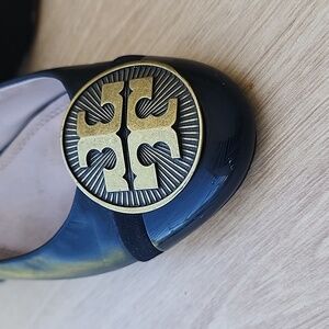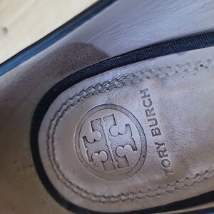TORY BURCH Black Minnie Embellished Ballerina Low Block Heels #33634 Size 8