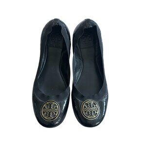 TORY BURCH Black Patent Leather Logo Ballet Flats Size 8
