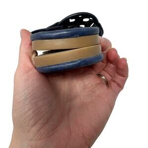 TORY BURCH Navy Blue Rainbow Stripe Miller Logo Patent Leather Sandals Size 7