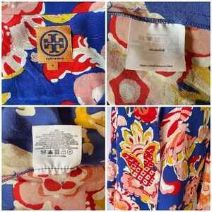 TORY BURCH SHIRT SILK BUTTON FRONT FLORAL ROLL TAB SLEEVE CHEST POCKET VIBRANT 4