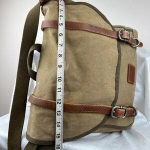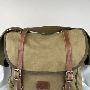 TSD BRAND Forest Canvas Messenger Bag Khaki with leather straps