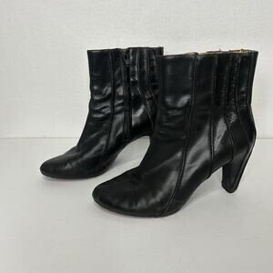 TSUBO Womens Black Leather Heel Ankle Boots US 8.5