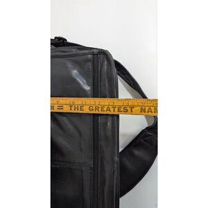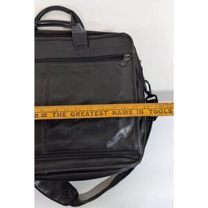 The TUMI Alpha Expandable Large Leather Briefcase is a stylish and functional shoulder bag designed for men. Made of high-quality leather with a solid black color, this vintage-inspired bag features a zip closure, inner and outer pockets, and an organizer for efficient organization. The adjustable nylon and leather strap adds versatility to the classic designer piece, making it perfect for everyday use in the city.