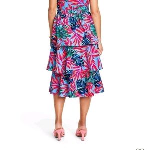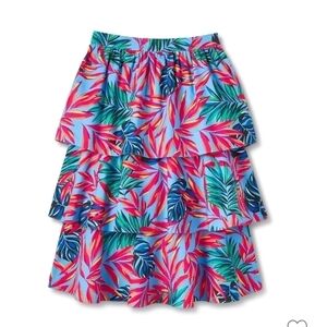 Tropical print tired midi skirt