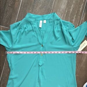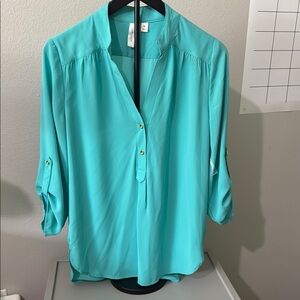 Tacera Blue Relaxed Blouse with Cuffed Sleeves