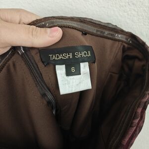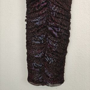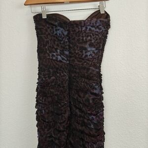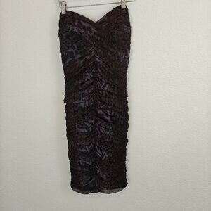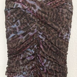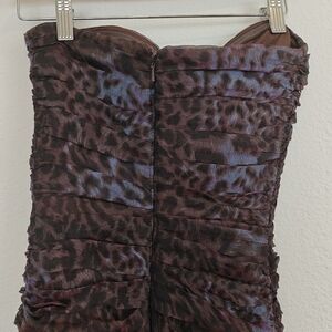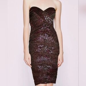 Tadashi Shoji Lotus Pink/Black Leopard Print Silk Ruched Strapless dress 6