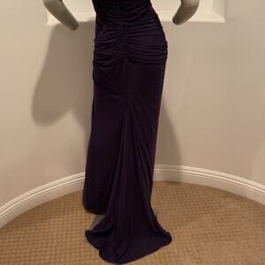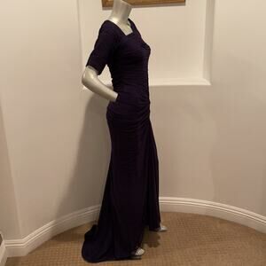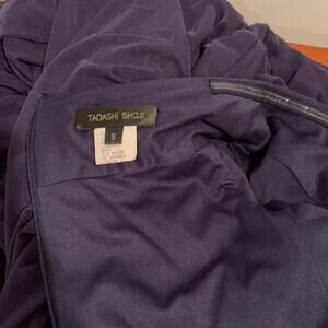 Tadashi Shoji Navy Asymmetrical Ruched Sleeve Gown