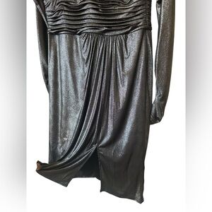 Shine in this elegant black metallic dress, perfect for any special occasion. Its shimmering fabric and sophisticated design make it a standout piece.